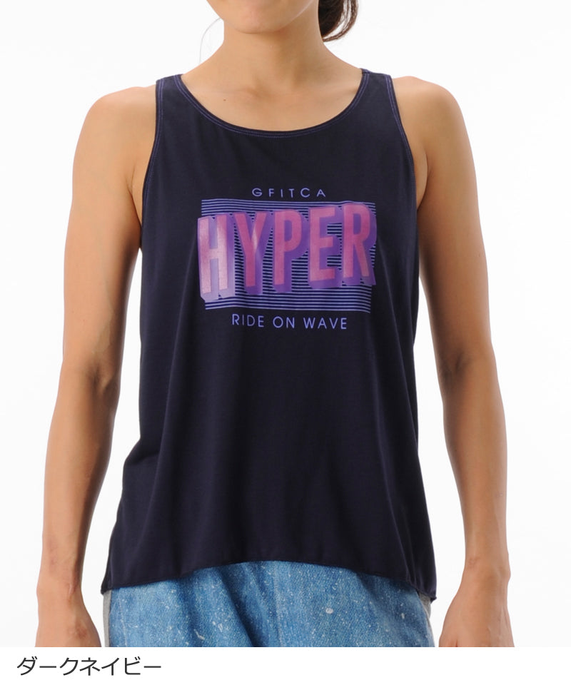 ・POPなプリントのすっきりシルエットのタンクトップ。