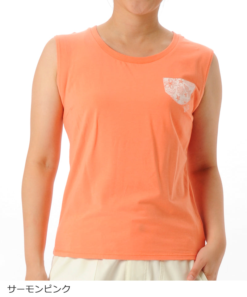 【シワ有り】 【0075】ポケットプリント タンクトップ フィットネスウェア OM-C875TT G-FIT ジーフィット Lサイズ サーモンピンク アウトレット