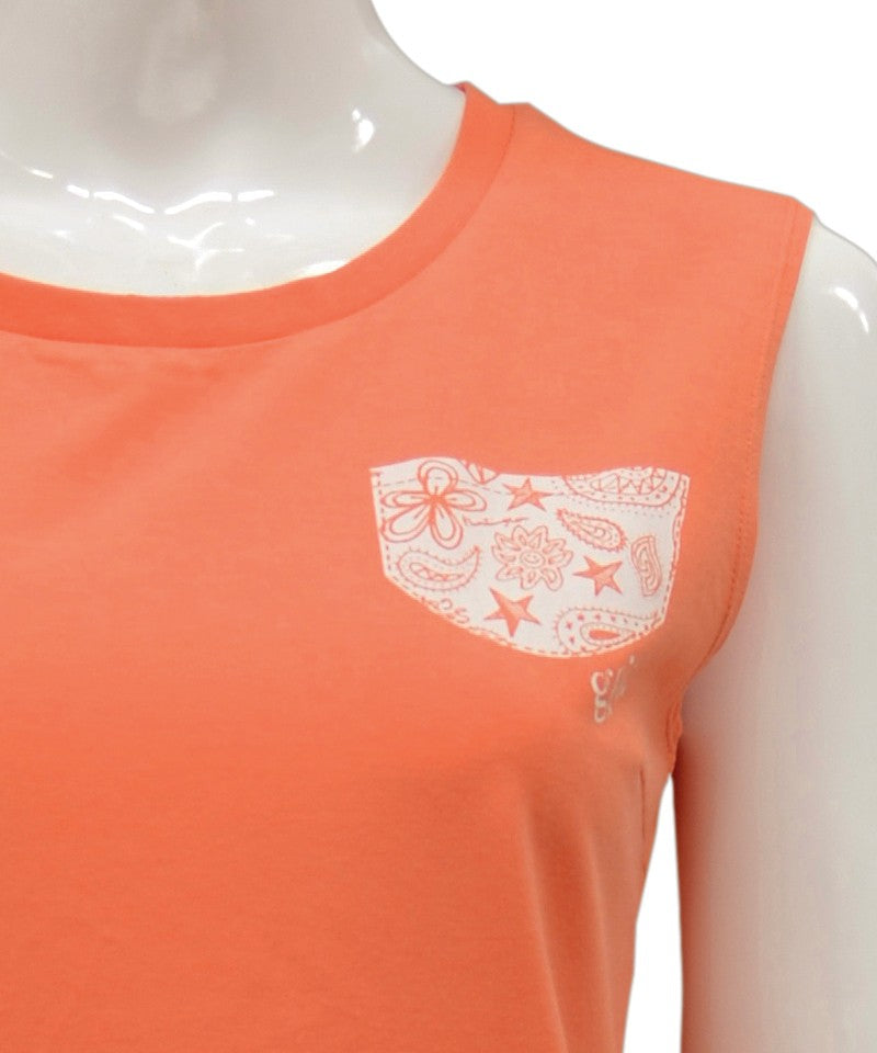 【シワ有り】 【0096】ポケットプリント タンクトップ フィットネスウェア OM-C875TT G-FIT ジーフィット Lサイズ サーモンピンク アウトレット