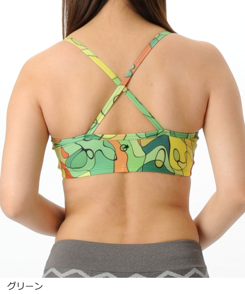 【シワ有り】 【0104】総柄 スポーツブラ フィットネスウェア OM-I011T G-FIT ジーフィット Lサイズ グリーン アウトレット