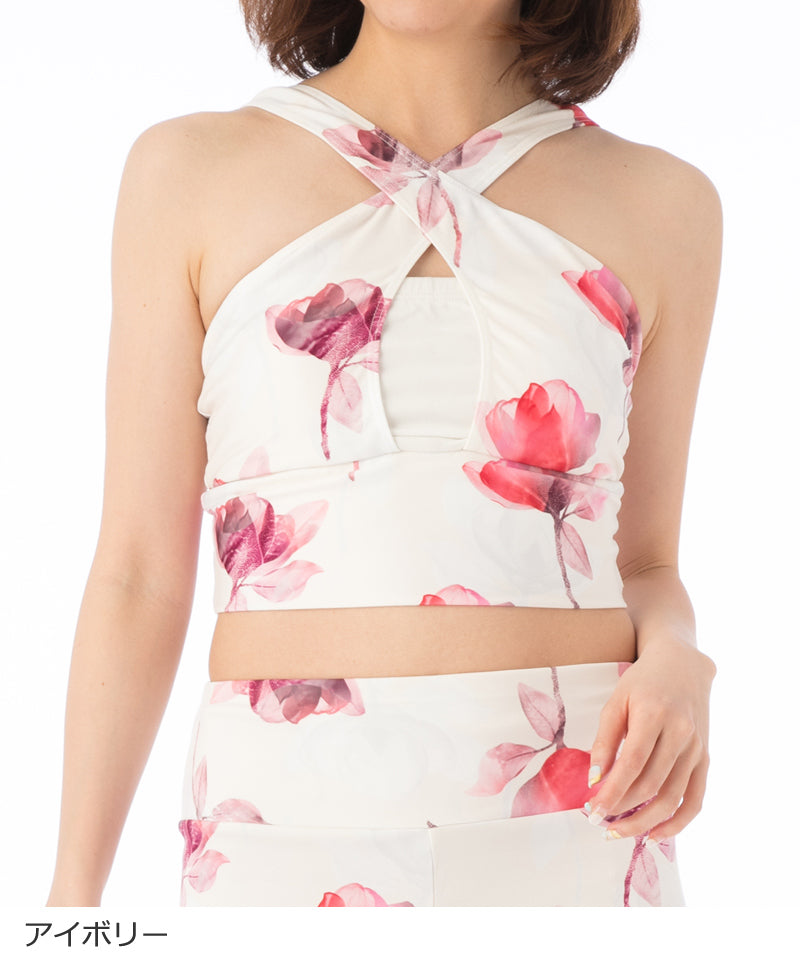 【シワ有り】 【0111】ミディアムトップ ヨガウェア RS-L485T RealStone リアルストーン Mサイズ アイボリー(ピンク花) アウトレット