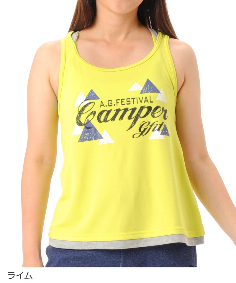 【シワ有り】 【0122】重ね着風 タンクトップ フィットネスウェア OM-C871TT Lサイズ ライム G-FIT ジーフィット アウトレット