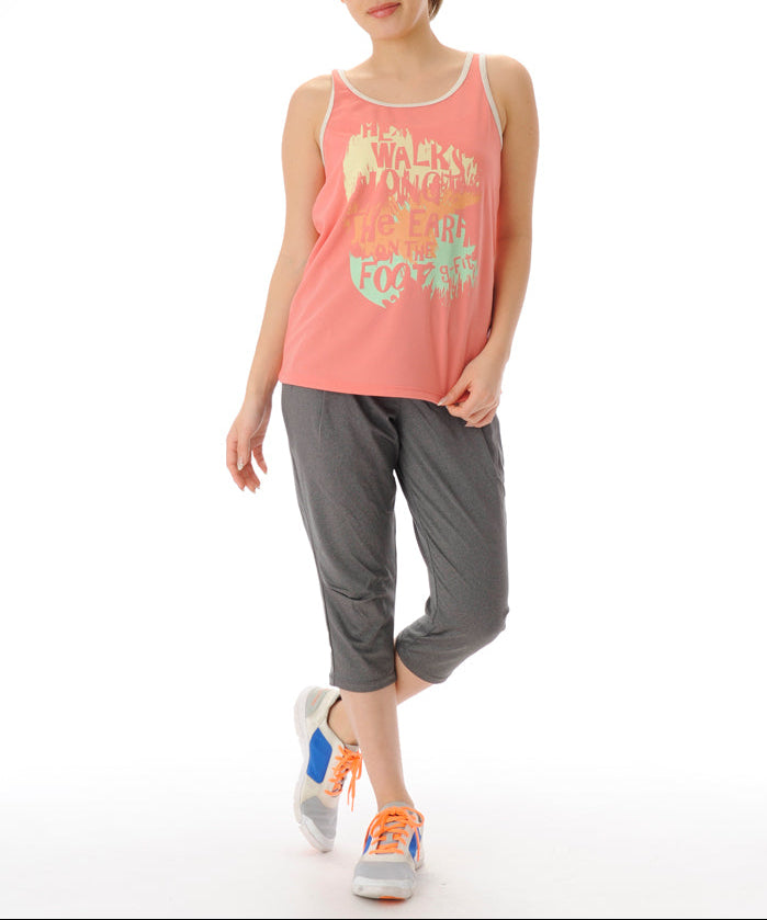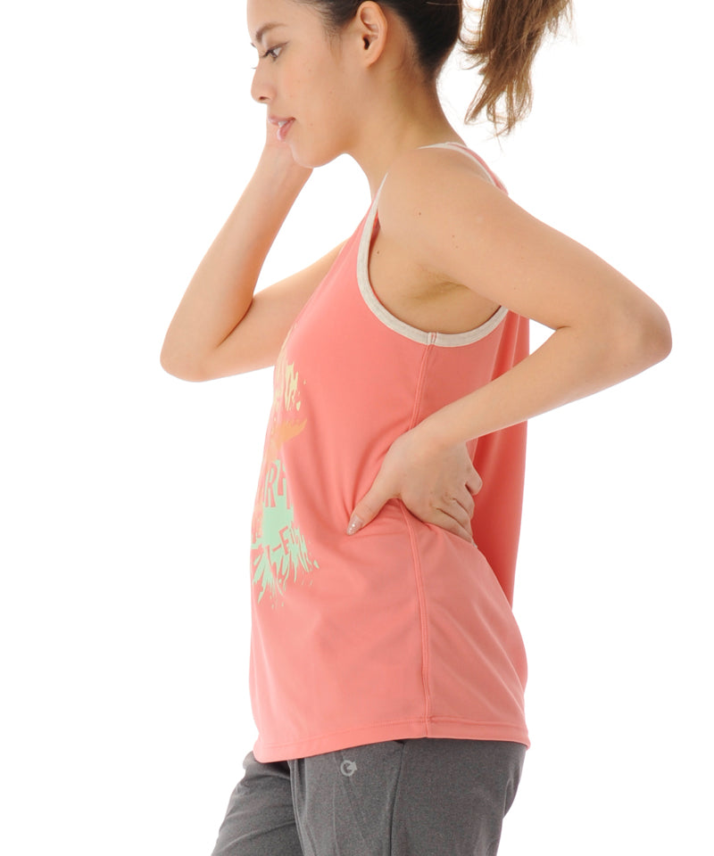 【シワ有り】 【0150】プリント タンクトップ フィットネスウェア OM-C908TT Lサイズ ピンク G-FIT ジーフィット アウトレット
