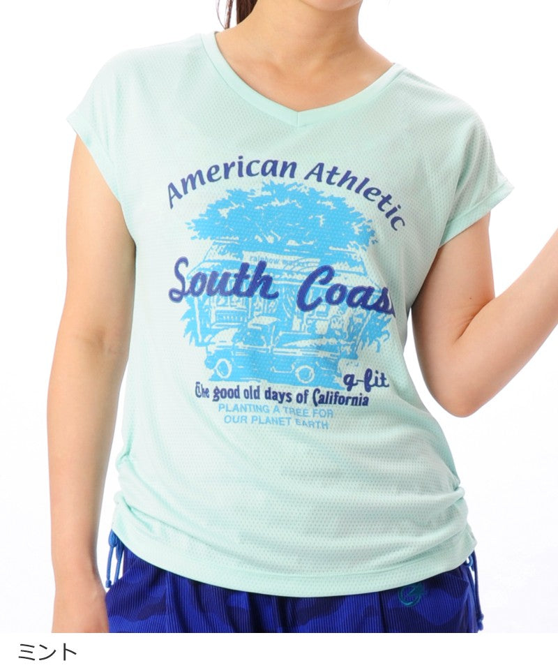 【キズ有り】【0313】シャーリング Tシャツ フィットネスウェア OM-C861TS G-FIT ジーフィット Lサイズ ミント アウトレット