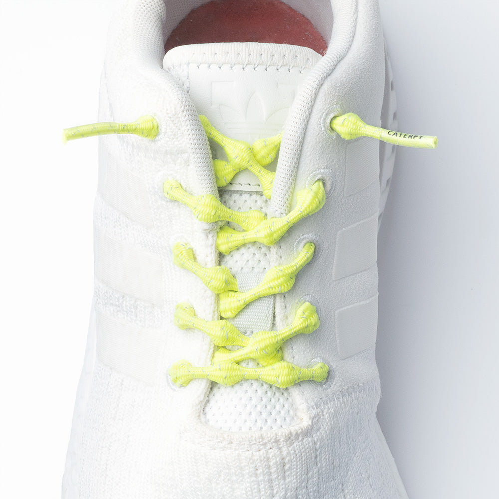 キャタピーは、先端のコブ状のふくらみと高い伸縮性をもった結ばない靴紐