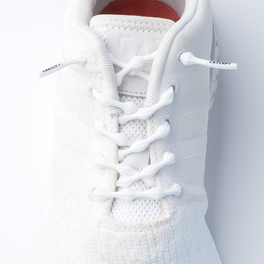 キャタピーは、先端のコブ状のふくらみと高い伸縮性をもった結ばない靴紐