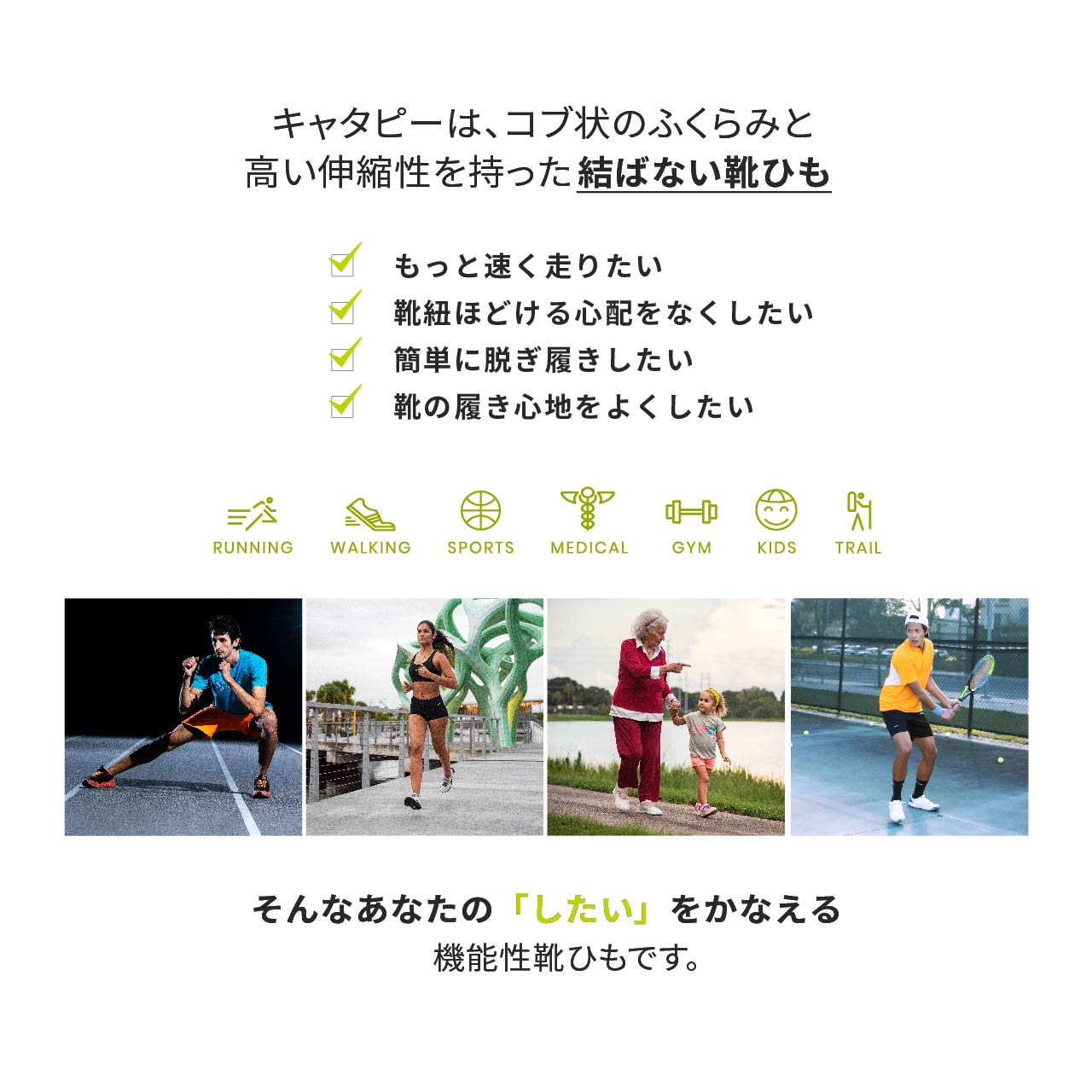 そんな「したい」をかなえる機能性靴ひもです。
