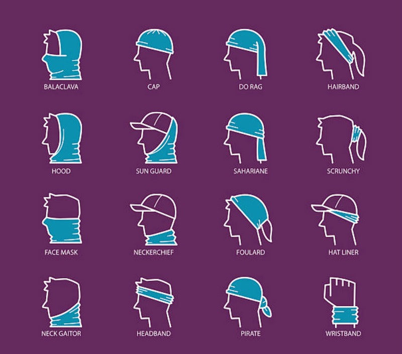 ヘッドバンドとして、スカーフとして、フェイスカバーとして、いろいろな使い方ができます。
