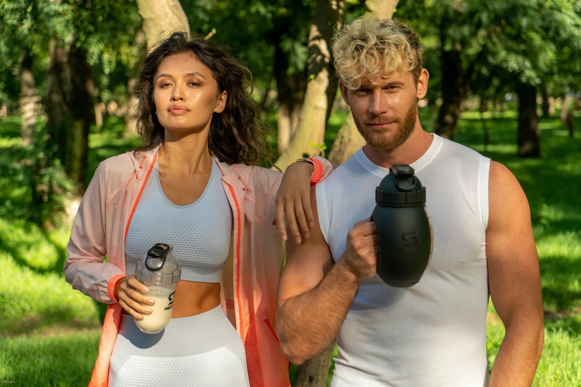 ステップ3:次に、プロテインパウダーと水を加え、さらに10秒間振ってください。