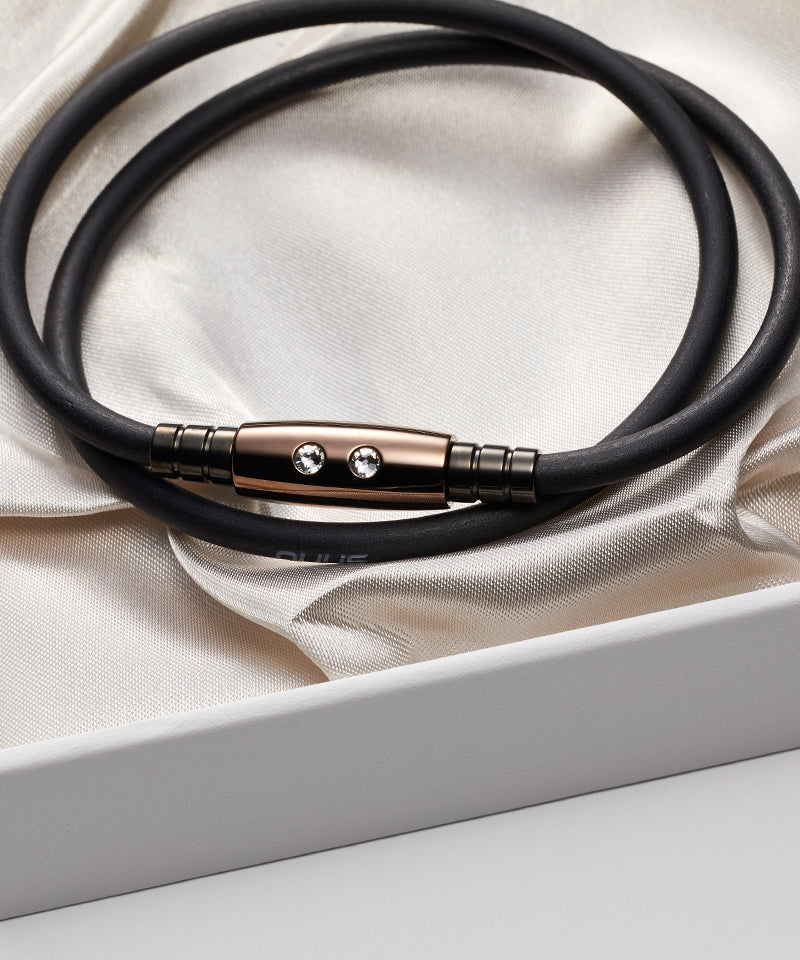 | 素材 | トップ:チタン、クリスタル ジョイント:ステンレス 紐:QUARTZコード+人工皮革 |