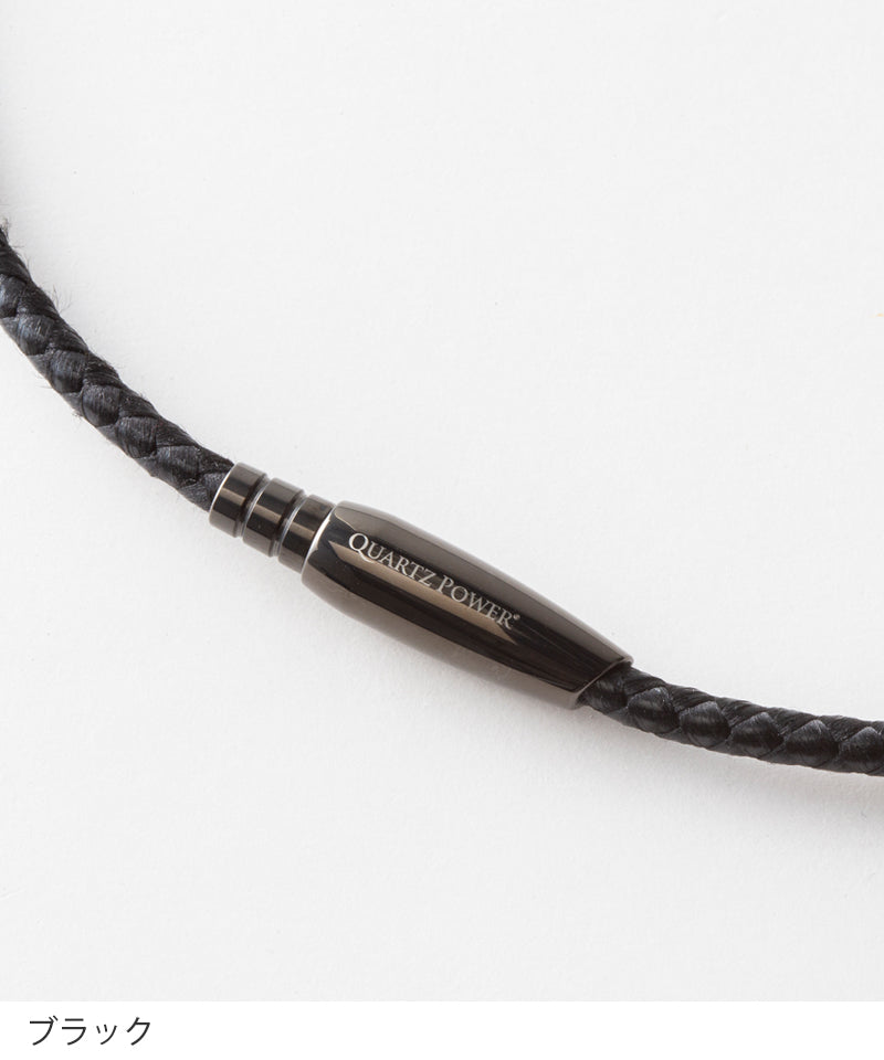 | 素材 | トップ:チタン、クリスタル ジョイント:ステンレス 紐:QUARTZコード+人工皮革 |