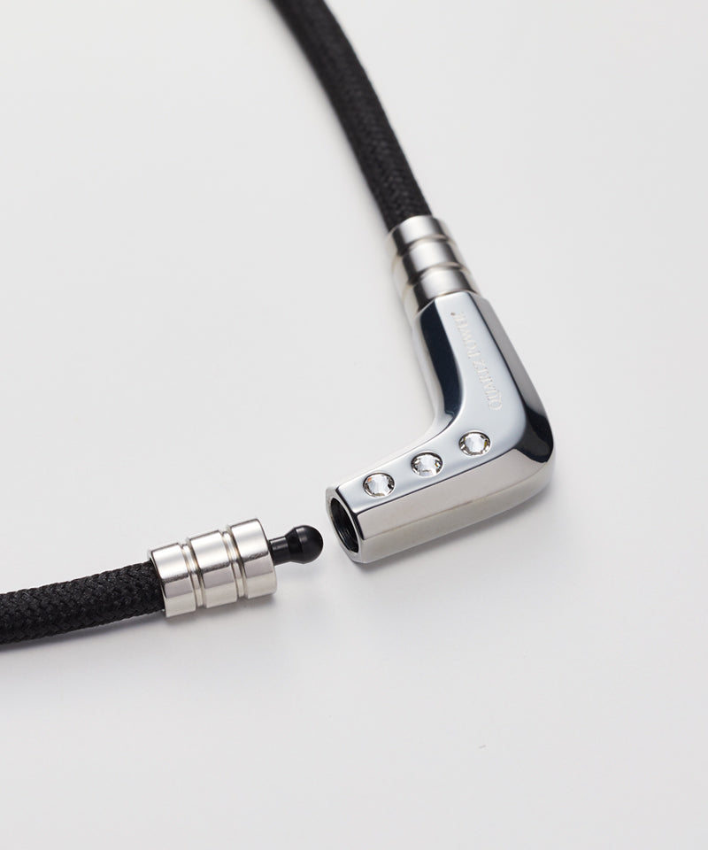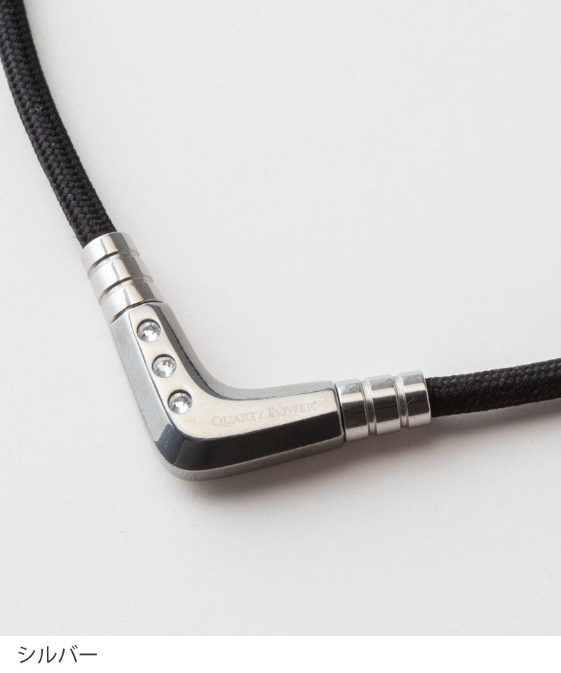 | 素材 | トップ:チタン、クリスタル ジョイント:ステンレス 紐:QUARTZコード+人工皮革 |